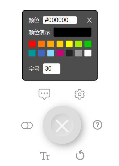 字体设置包括字号以及颜色,这代表着您即将要发送的弹幕的字体颜色和字体大小。您可以直接点击颜色选项选择预先配置好的 14 种颜色,也可以在输入框中输入您想要的弹幕颜色对应的十六进制数。设置后颜色将会显示在颜色演示区域。